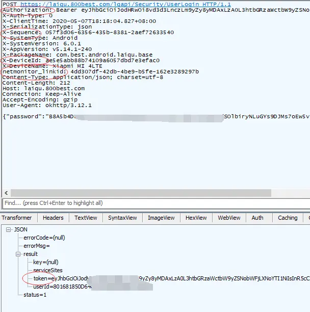 其中X-Sequence与netmonitor_linkid只是随机的uuid,需要分析的只要DeviceId、Authorization、PassWord。