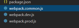 默认的webpack配置文件名称为 webpack.config.js ,但一般都会进行环境分离,所以删除 webpack.config.js,新建以下三个文件,分别为公用环境、开发环境、生产环境