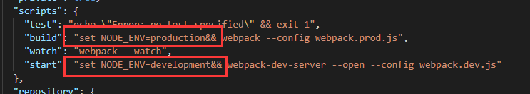 "start": "set NODE_ENV=development&& webpack-dev-server --open --config webpack.dev.js"
