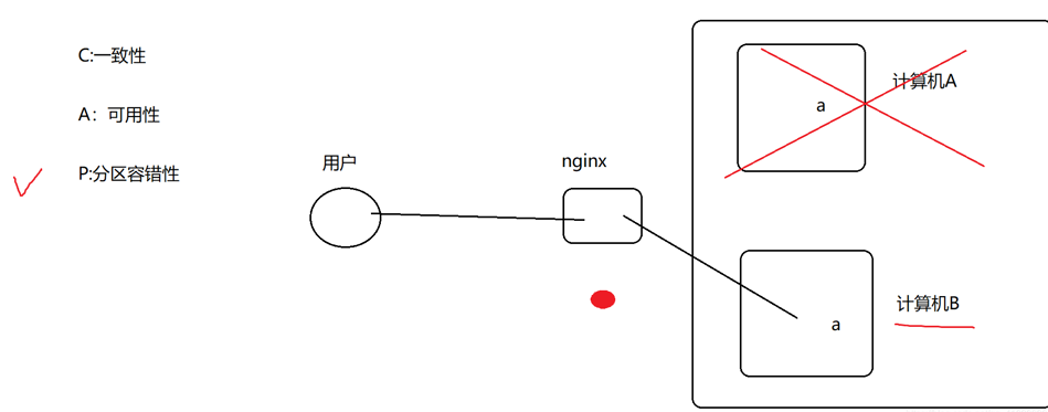 当计算机A故障,分区容错性满足,如果一致性满足,那必须回滚,否则计算机B有数据,A没有,这样就不满足数据一致性。