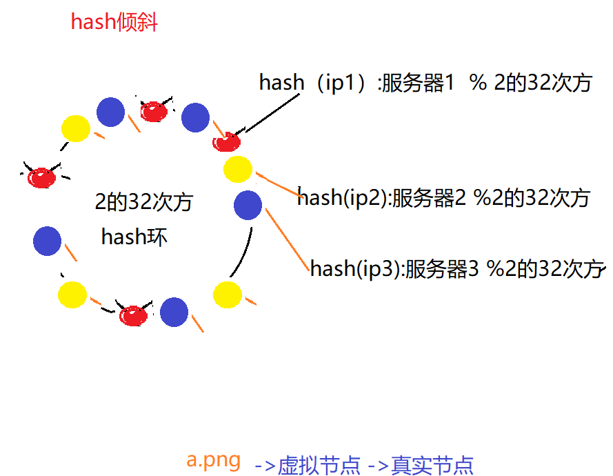 在换上生成多个 虚拟节点,后续 请求先找虚拟节点,然后再通过虚拟节点找到对应的真实节点