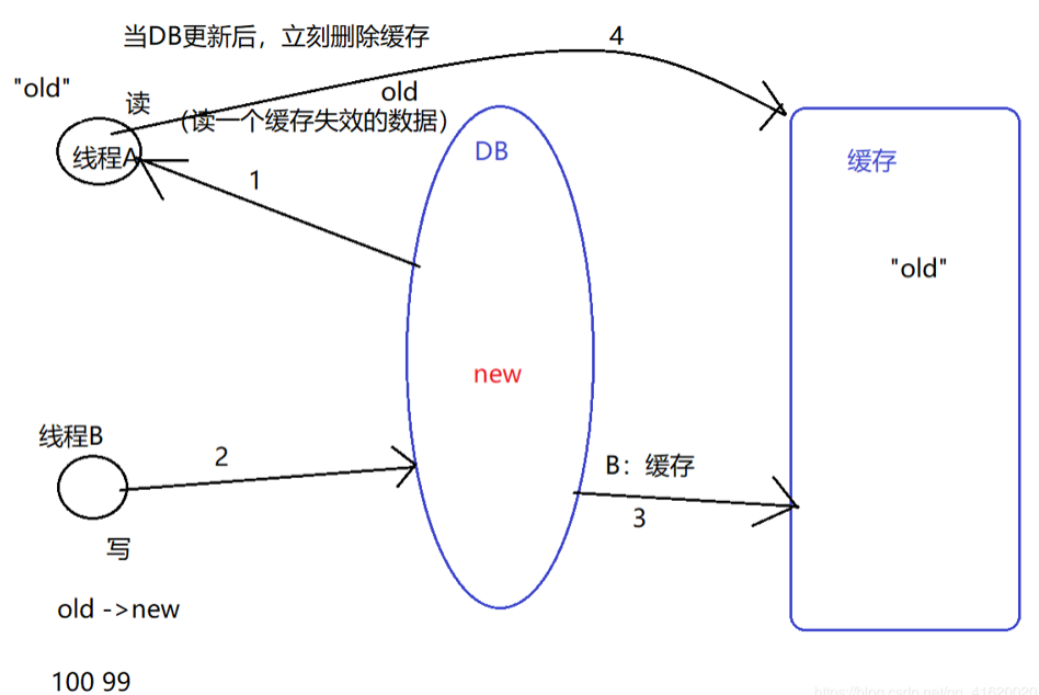 最容易想到,但也不推荐的做法: 当DB更新后,立刻更新缓存 ; 先删除缓存,在更新DB。