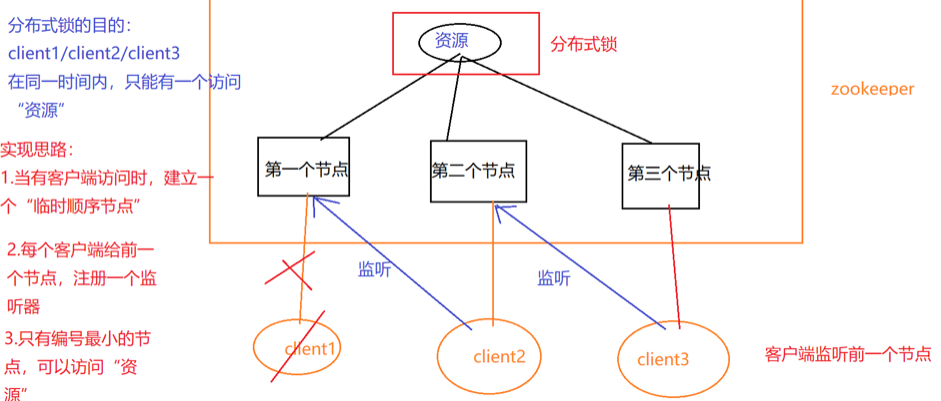 树种包含很多叶节点,在分布式锁中使用的 叶节点类型: 临时顺序节点。