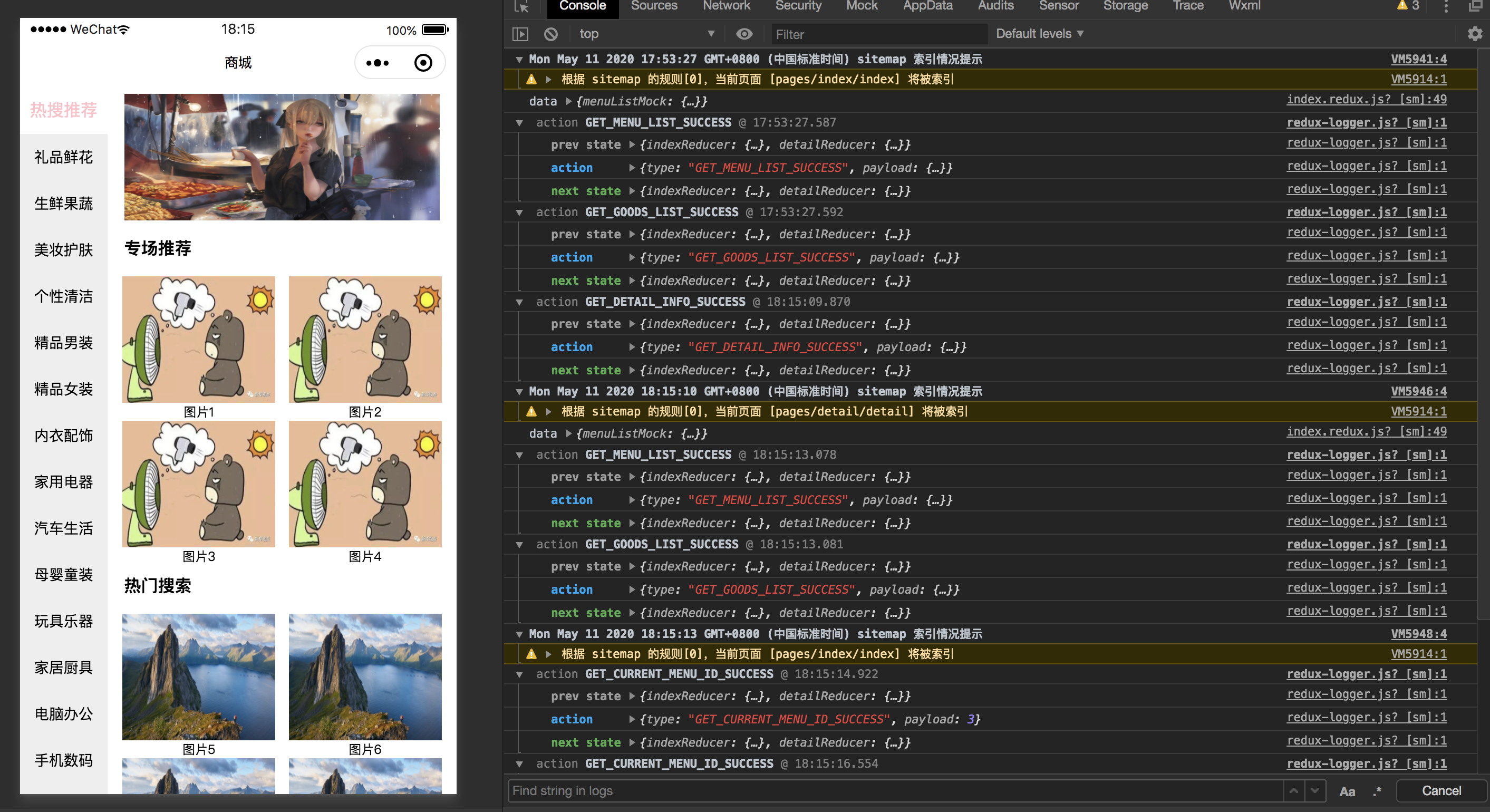 小程序中引入redux大概就是这样子,调用api没有单独抽出来在redux-saga中处理,处理reducer这一块数据内容也没有再额外封装起来,其实更好的还是应该再单独封装一个模块。这样也就不用在页面去调用api,直接在saga中处理好。哈哈哈哈,简单的就到这里吧,望指点一二。