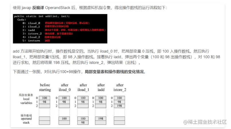 操作数栈:栈帧中用于计算的数据临时存储区;同理操作数栈也是一个先进后出栈,存储的元素可以是Java中的任意数据类型;