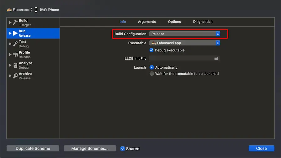 iPhone 6系统为iOS 12.4备注3: 为了使用尾递归优化,工程设置了relase模式