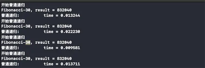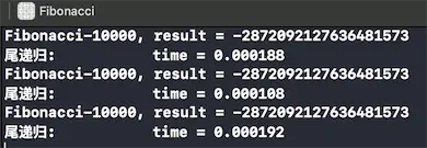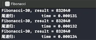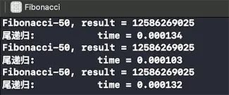 count = 30, count = 50, count = 10000 等的执行时间,见使用尾递归对比