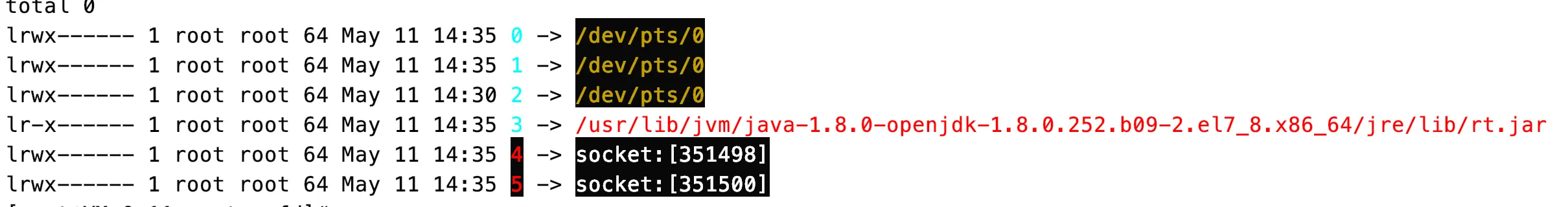 /proc/pid/fd目录下存放了该进程的所有fd(文件描述符)