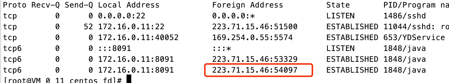 netstat -natp命令查看8091端口也建立一个可用的tcp连接。
