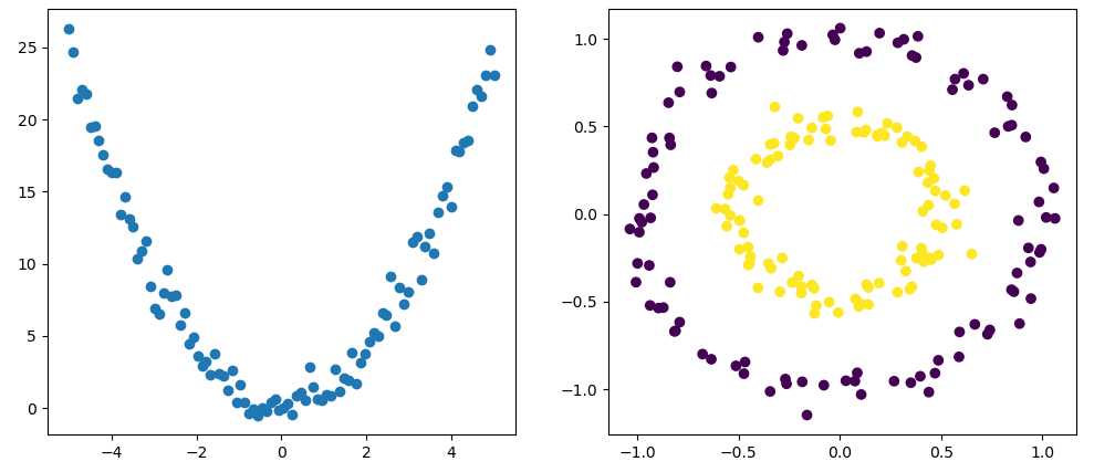 等等。但是对于上面的两个例子来说,只需要将原始特征映射至最高2次多项式就能完成相应的任务,即通过如下代码便可完成:
