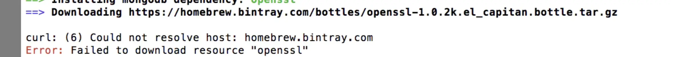 3.终端输入 brew install mongodb-community@4.2 下载,下载过程中可能会中止报错,继续 install 即可(本人就好几次下载过程断开失败,最终第六次成功安装,过程是真的苦😭)