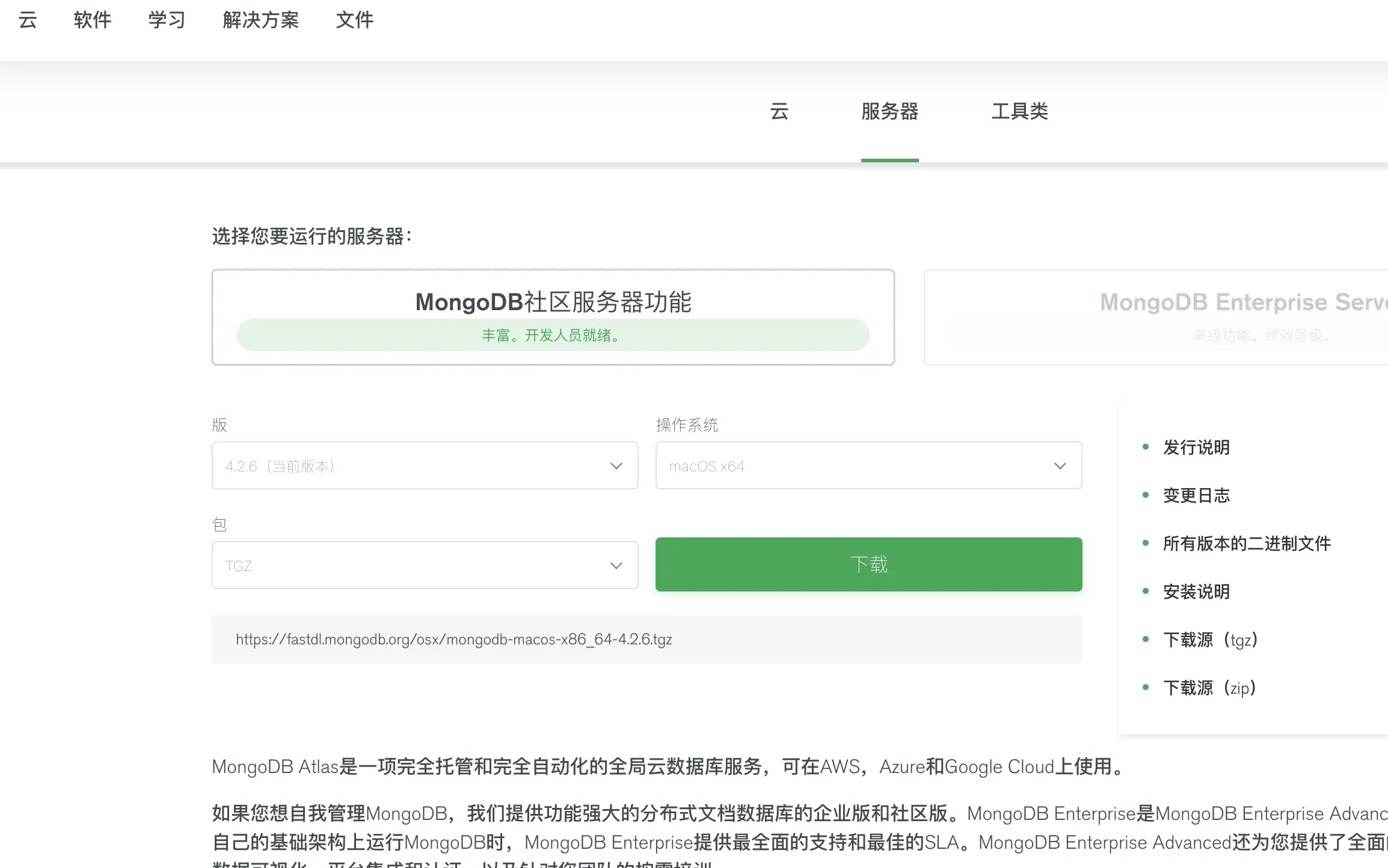 这里首先说明一下,MongoDB现在已经不再开源,只能下载社区版使用了。