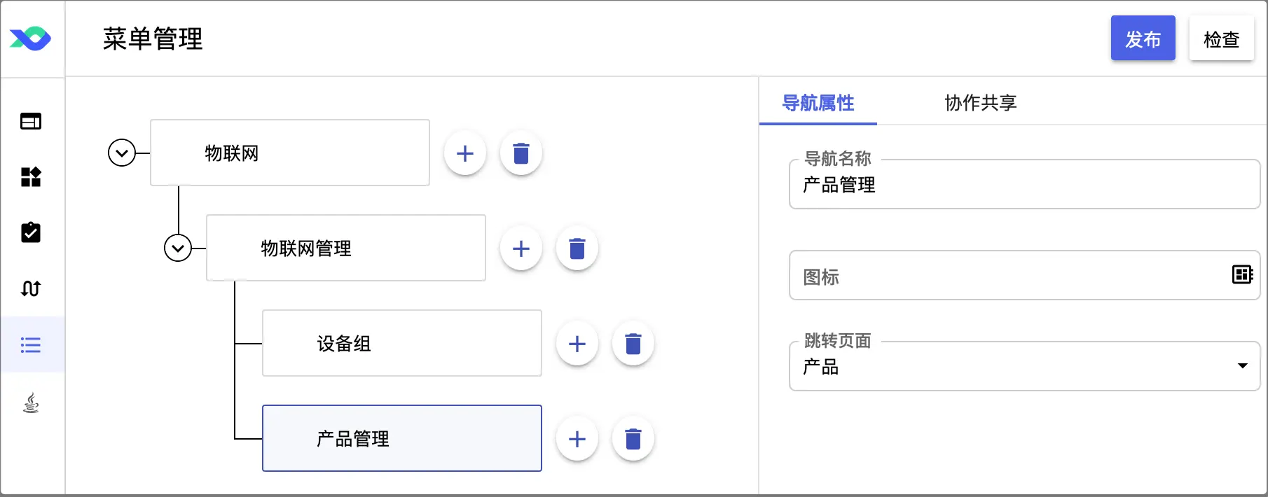 2. 导航名称:物联网管理;