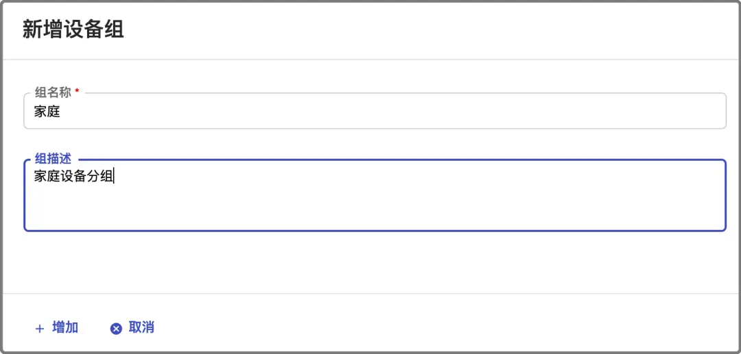a. 名称:新增设备组