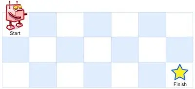 我们来分析一下问题,机器人要从左上角走到右下角,地图是没有缺陷的,所有点都可以到达。由于机器人没办法走回头路,也就是说机器人在通往终点的过程当中走过的路程是确定的。也就是要走n-1条横边和m-1条竖边。