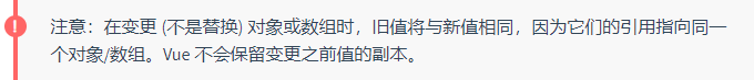 但是此时新旧值都是相同的引用,现在是不是对官网给出的 Tips 有一种恍然大悟的感觉了~