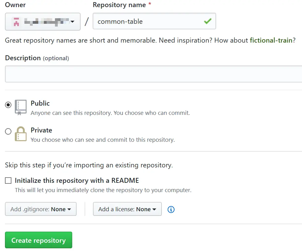 第一步:在github上创建自己的Repository,创建页面如下图所示: