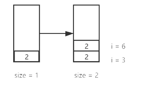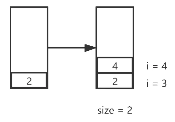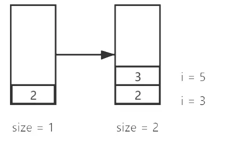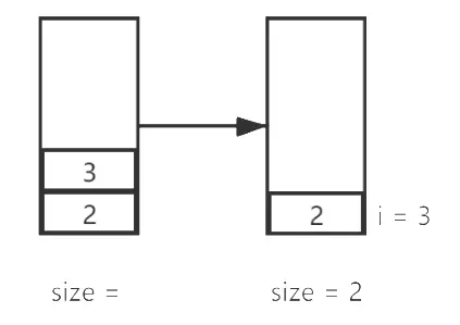 下一次需要进栈的元素是2,然后重复上面的操作,先把栈顶元素与新元素比较,需要出栈: