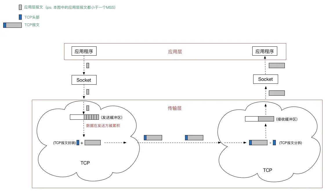 另外, TCP实现出于传输效率考虑,