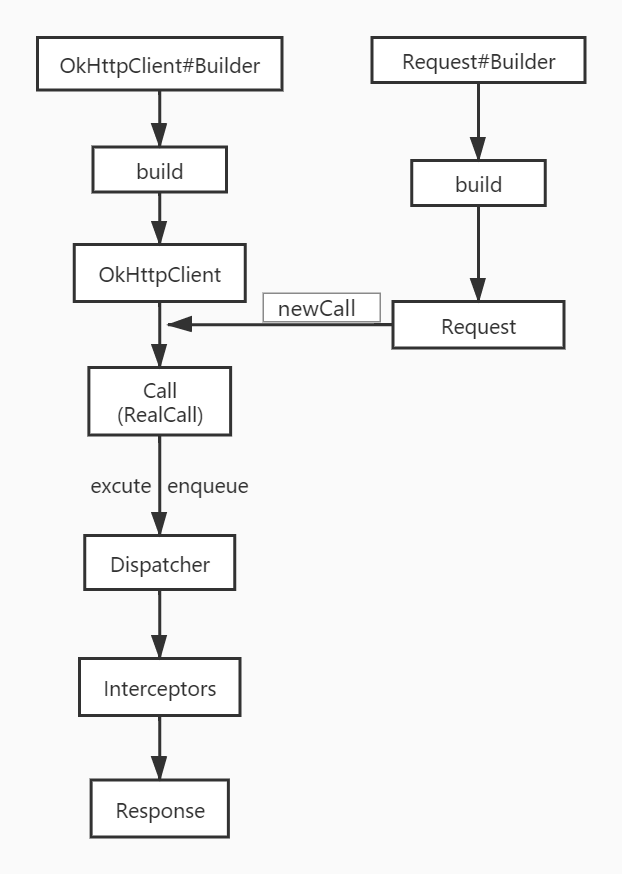 当调用OkHttpClient的newCall()方法返回一个call时,实际上是调用了RealCall的newRealCall()方法,该方法封装了一个RealCall对象并返回供用户进行同步或异步调用