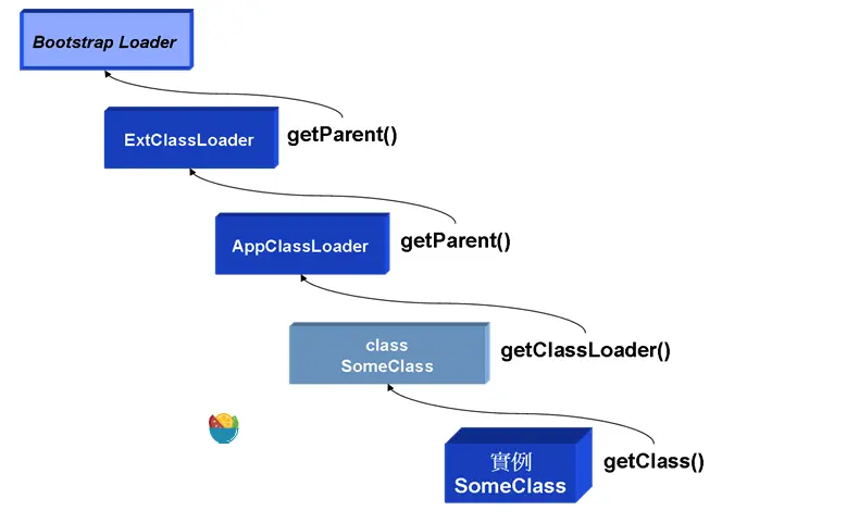 当你尝试执行java xxx命令时,java会尝试找到JRE的安装目录,然后寻找jvm.dll,接着启动JVM并进行初始化操作,接着产生BootstrapLoader,Bootstrap Loader会载入Extended Loader, 并设定Extended Loader 的parent 为 BootstrapLoader, 接着Bootstrap Loader 会载入 Application Loader, 并将Application Loader 的parent 设定为Extended Loader