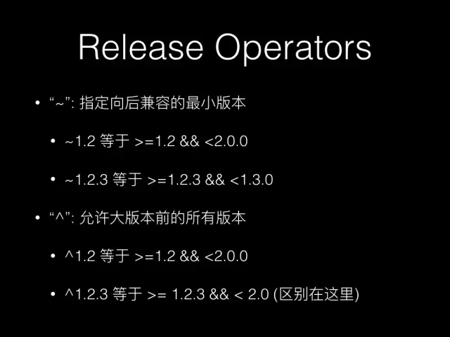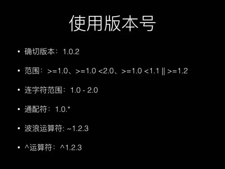 我们在依赖一个包的时候,很多同学对于依赖的版本一直处于蒙逼状态,那看完下一页你就恍然大悟了,首先是两个符号:"~" 与 "^"