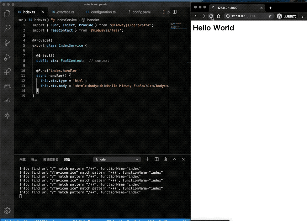 除此之外,你可以用上大部分 Midway Web 开发的装饰器,甚至直接把业务代码拷贝过来即可,整个 midway faas 框架会帮你完成整合和运行。