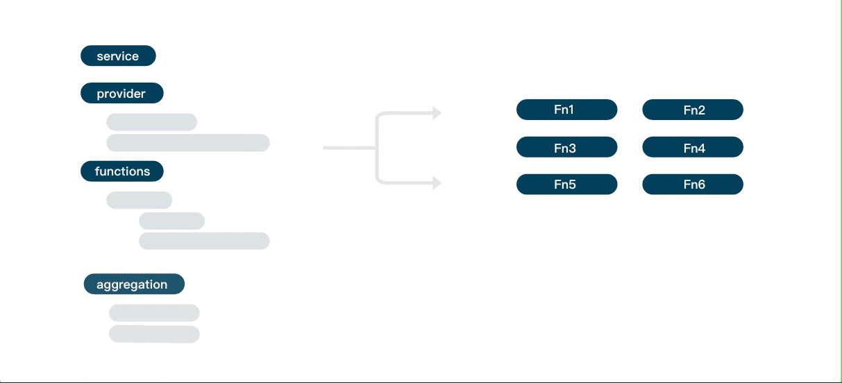 midway faas 采用的是接口自定义聚合的模式,根据流量模型,用户可以自己决定部署模式,我们的 f.yml 中可以进行自由配置,你可以决定将所有接口汇聚到一起,部署到一个函数容器中享受整体的扩缩,也可以将热点的接口随意移出单独部署,这一切都不需要修改代码,只需要动 yml 配置文件即可。