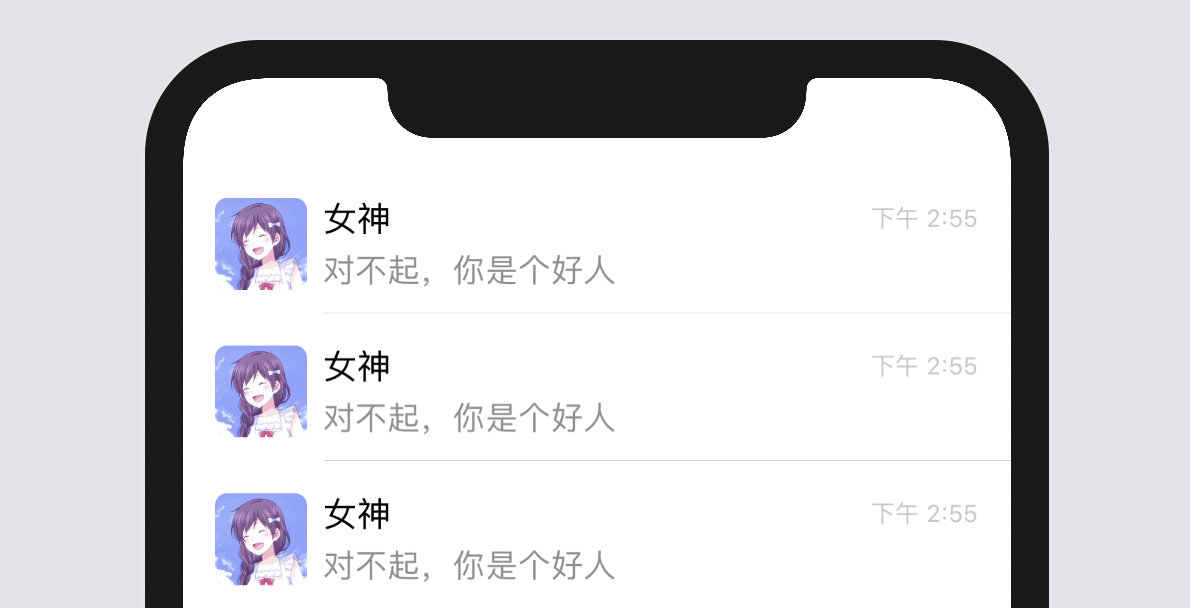 在这篇文章里,我会一步一步编写微信的首页列表视图,一步一步将代码呈现上来,并仔细地讲解,我相信你们都可以看懂的,先来看看效果图。