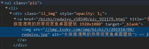 3. 可以看到<a href>就是图片的链接,而src就图片的地址,所以我们可以找它的上一级标签<ul>。如果再找不到那就再找上一级以此类推(找到越详细内容更准确)。使用选择器xpath,获取到src的值(网址后缀)之后,将后缀加上“https前缀”就可以得到每一个网址,如下图所示: