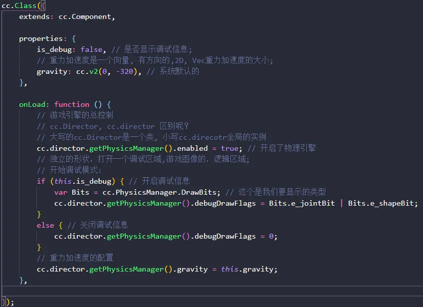 【1】创建一个组件类,要能够被游戏引擎识别。新建enable_phy.js。