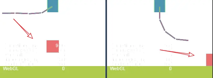 绳子会在重力的作用下往下摆,红色块会在重力的作用下掉到地面,当绳子撞到砖块会将砖块推向右方,且绳子会继续来回摆动。如上图所示。