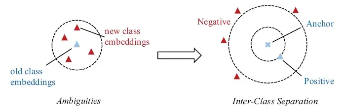 第三,在分类的时候,使用large-margin的分类损失,使用易误分的新类别作为难例,提升训练的效率,如下图所示。