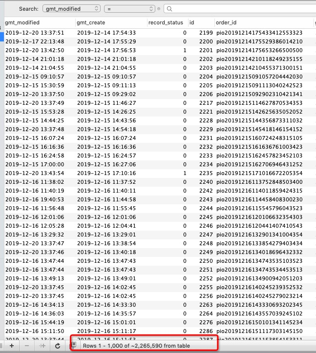 我们在大数据量中的数据查询中常使用到分页查询,在下面的例子中,全表数据量在226w左右