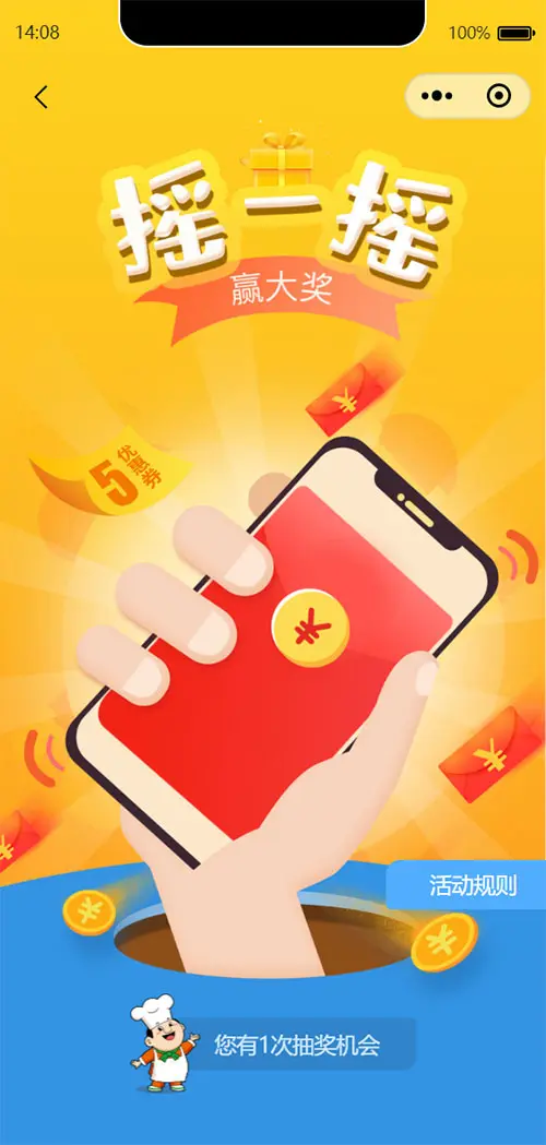 具体效果为:通过手机摇一摇,如果摇一摇成功,请求后台接口,后台随机返回抽奖结果(中奖或未中奖),抽奖次数减1,并播放不同的音效,