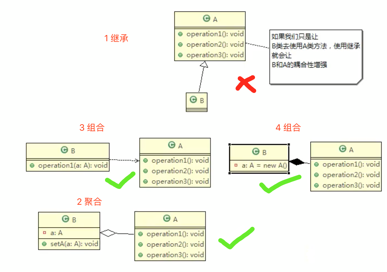 - 组合:符合合成复用原则