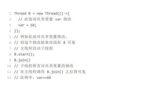 主线程A等待子线程B完成,主线程A可以看到子线程B对共享变量的所有操作。