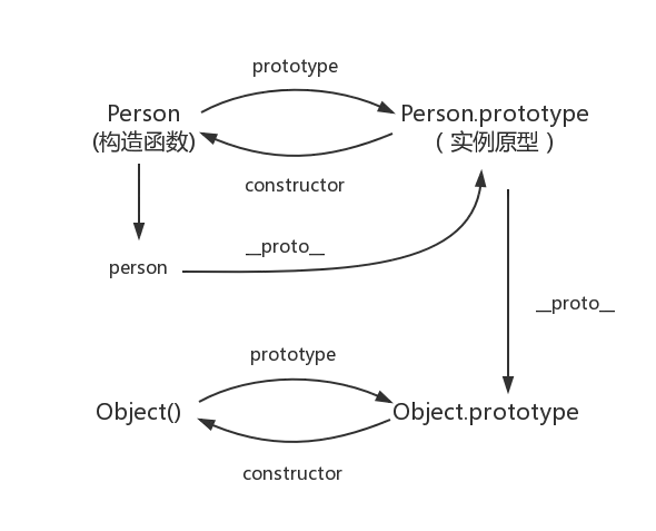 原型也是一个对象,并且通过Object构造函数生成。结合之前所讲,实例的 proto 指向构造函数的 prototype ,所以我们再更新下关系图: