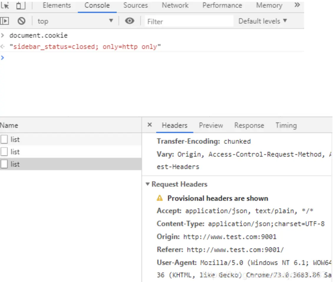 上面两个截图我们可以看出,上面的list请求带上了Cookie信息,那么你不仅会疑问什么情况下http请求会把cookie带上,什么时候http请求不带cookie信息呢,解答这个疑问之前先了解些cookie相关的基础性的东西: