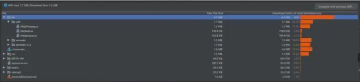 - 由于引用了很多第三方库,lib 文件夹占用的空间 通常都很大,特别是有 so 库的情况下。很多 so 库会同时引入 armeabi、armeabi-v7a 和 x86 这几种类型,这里可以只保留 armeabi 或 armeabi-v7a 的其中一个就可以了,实际上微信等主流 app 都是这么做的。