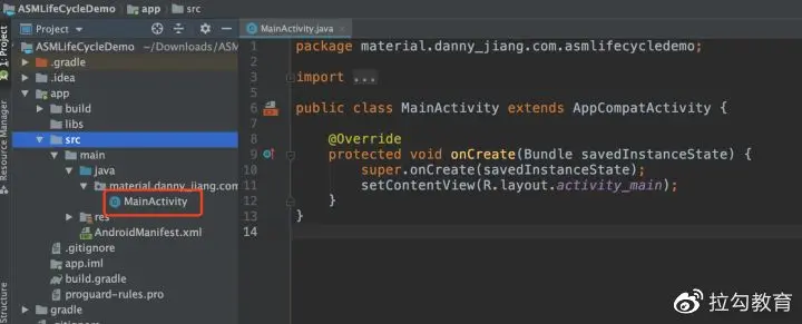 创建主项目 ASMLifeCycleDemo,当前项目中只有一个 MainActivity,如下:
