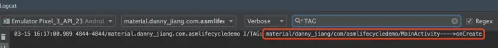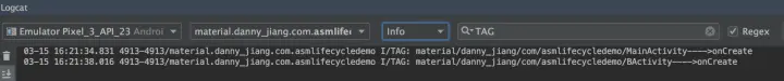 那么 Logcat 中的日志如下: