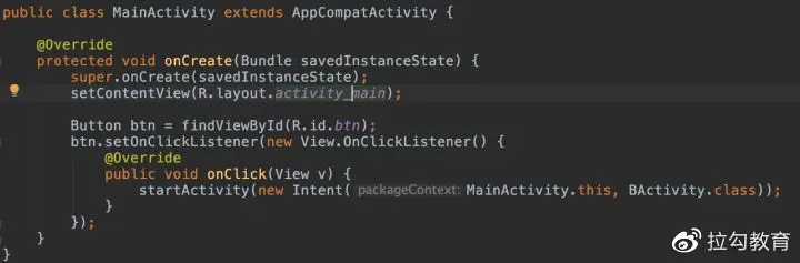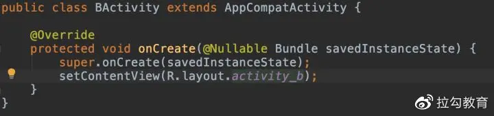 后续如果我们有新的 Activity,比如新建一个 BActivity.java 如下: