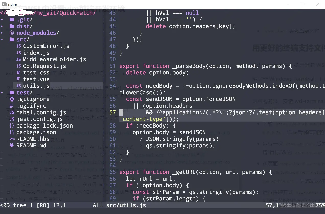 更重要的是,安装 wsl-terminal 除了能获得比默认 wsl 终端更好的体验,也能支持前者可能无法正常显示的 vim-devicons 文件图标。