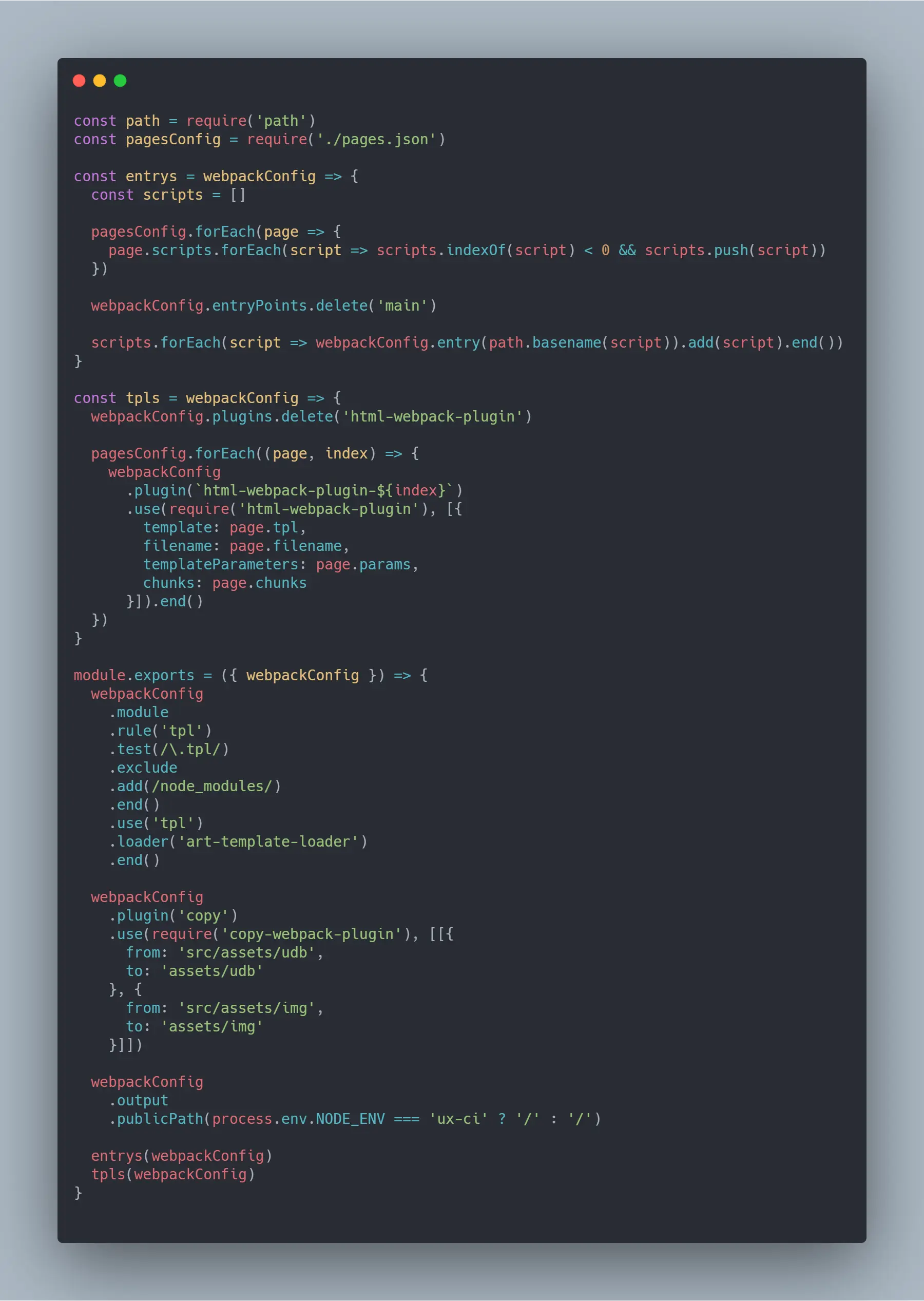 之所以会选择art是因为它的模板语法,那说到模板语法肯定会有人问为什么不用ejs呢? 开始的时候使用的就是ejs,但是ejs-loader在热更新上有问题,并且监听不到新增页面,在开发阶段十分的不便,就替换了也拥有ejs模板语法的art-template了。