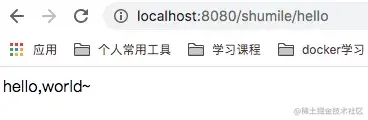 重新启动服务,在浏览器输入地址:http://localhost:8080/hello,