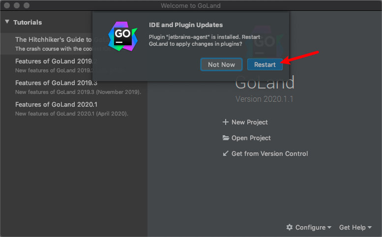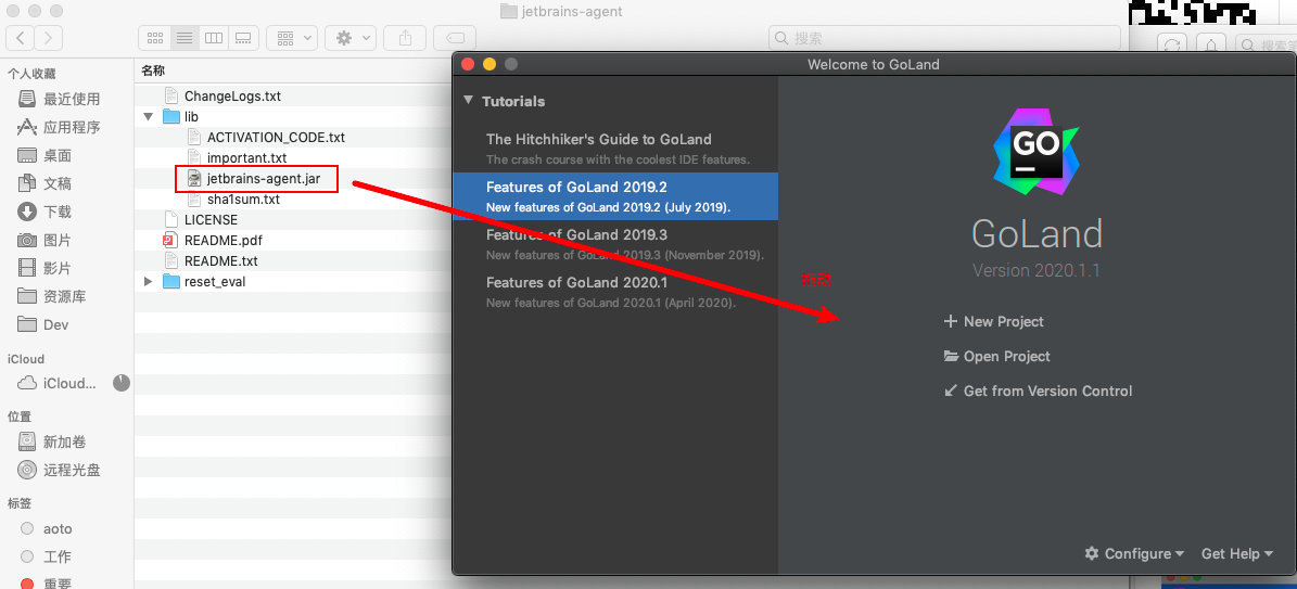 lib/jetbrains-agent.jar拖入窗口,然后点重启