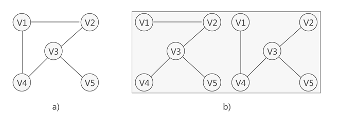 连通图中,由于任意两顶点之间可能含有多条通路,遍历连通图的方式有多种,往往一张连通图可能有多种不同的生成树与之对应。
