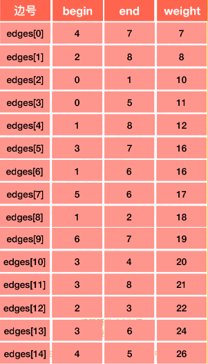 //将路径对应的begin,end,weight 存储到edges 边集数组中.