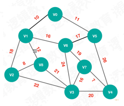- 初始化2个数组, 从v0开始寻找最⼩⽣成树, 默认v0是最⼩⽣成树上第⼀个顶点